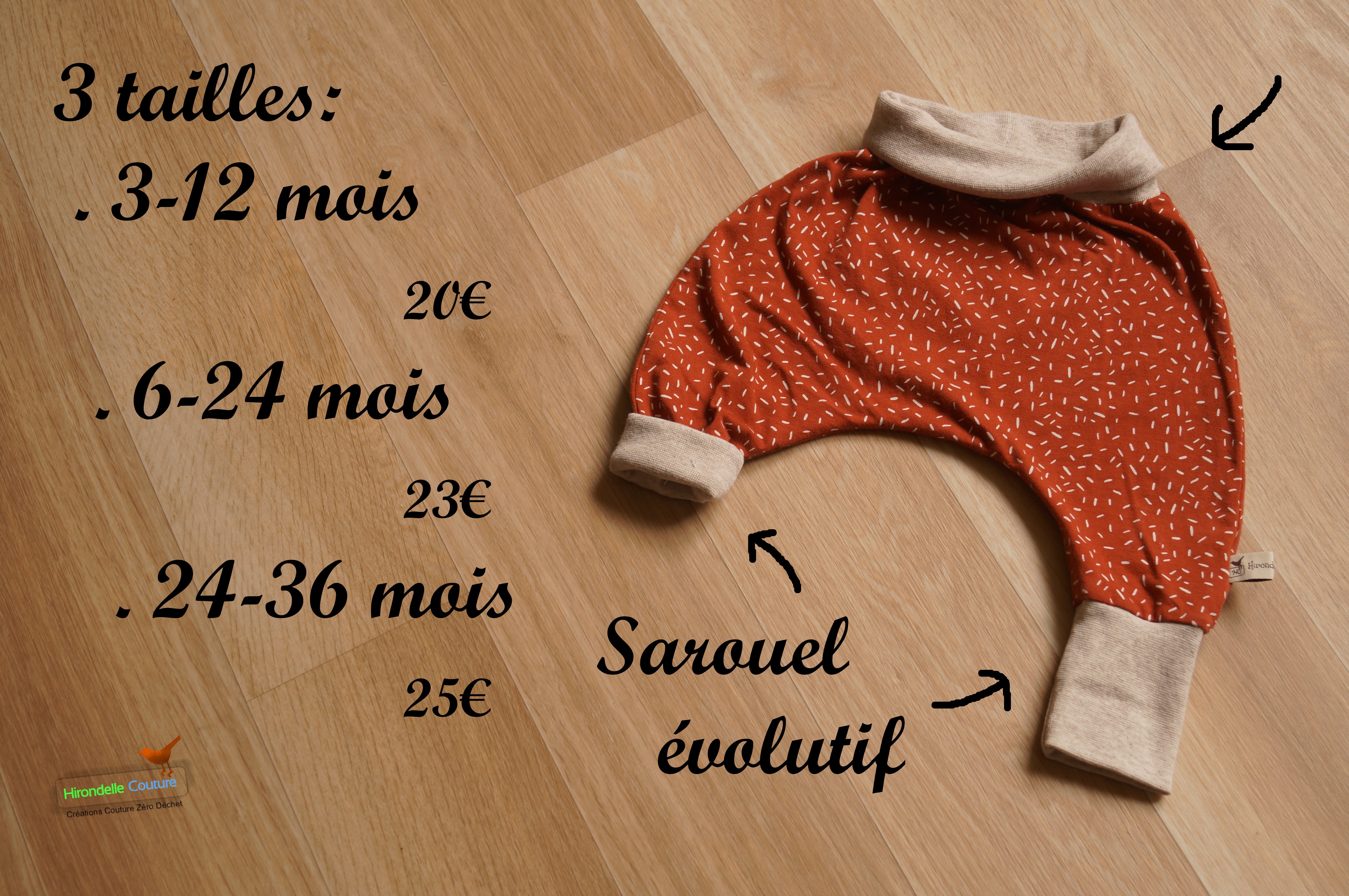Les sarouels sont adaptés aux bébés en couches lavables (et en couches jetables aussi bien sûr!)